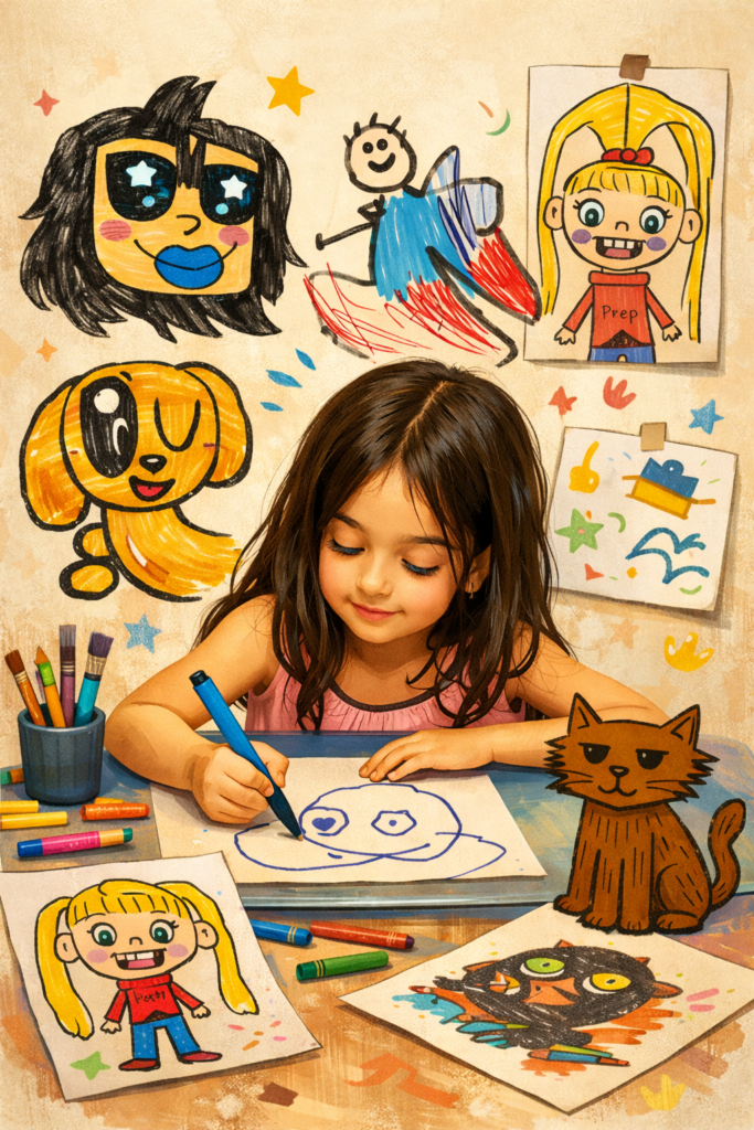 Through research, study, and real experience, I developed a different approach—one that makes drawing exciting while encouraging children to think, imagine, and create on their own. No copying. No rigid rules.
